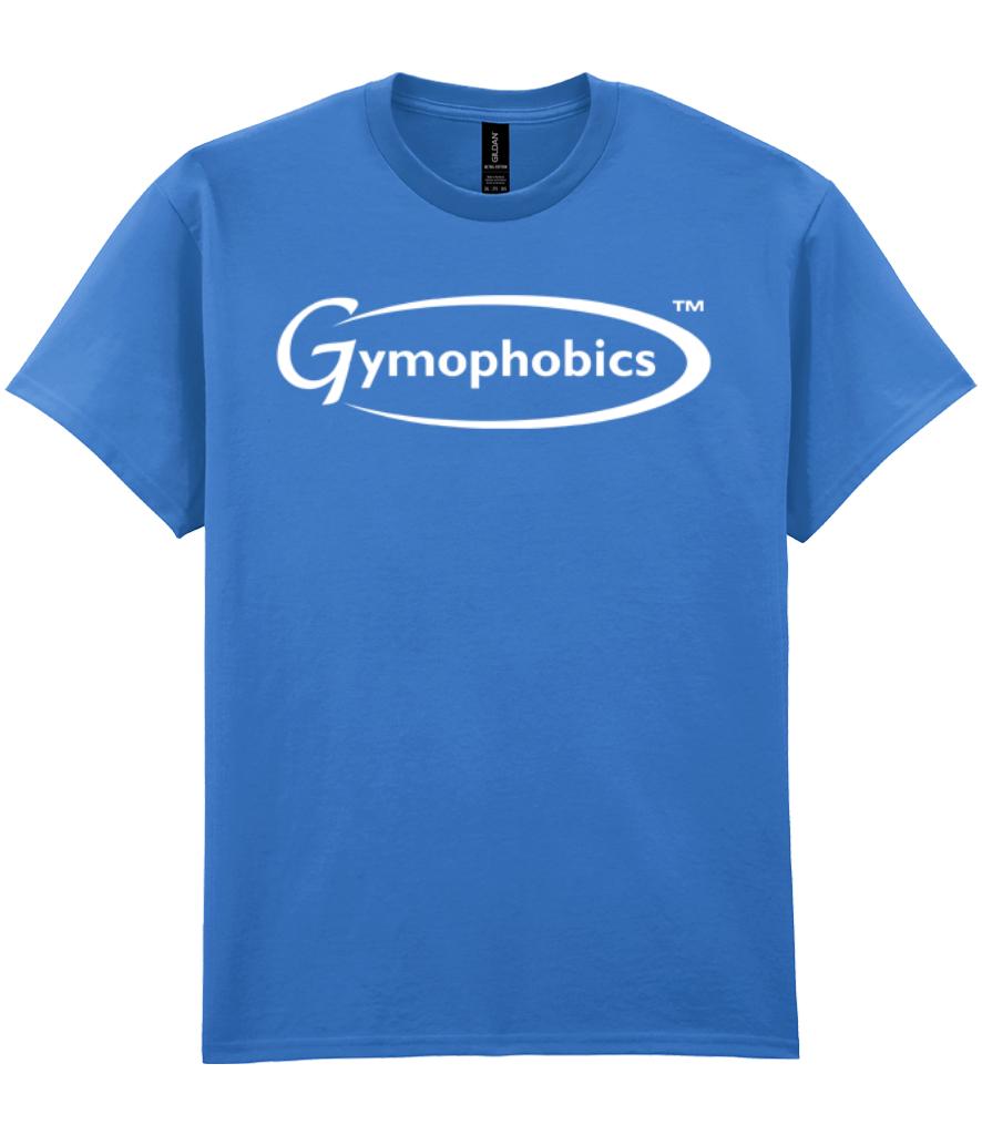 The Gildan Ultra Cotton T-Shirt offers a classic fit, complemented by a ribbed collar and reinforced taped neck and shoulders for enhanced durability. It features twin-needle stitching on both sleeves and hem, along with a tubular body construction. The tear-out label ensures added comfort. The front displays the Gymophobics logo, available in black, white, or optional glitter prints for a small additional fee.