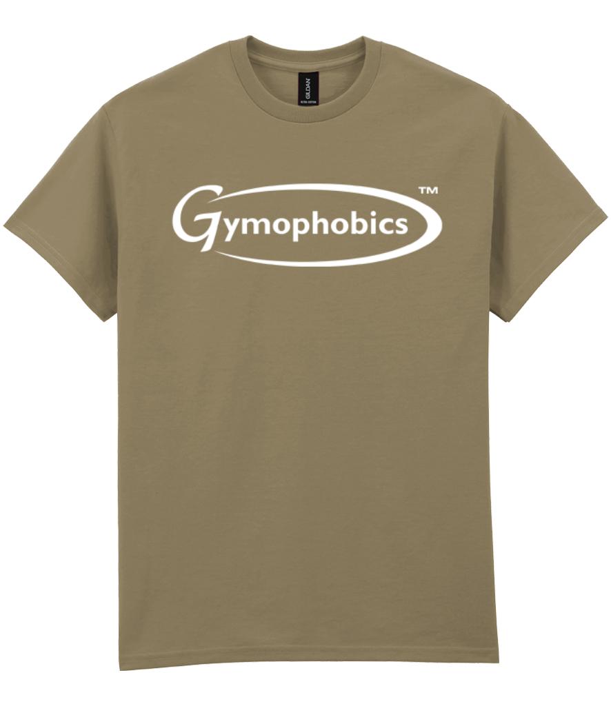 The Gildan Ultra Cotton T-Shirt offers a classic fit, complemented by a ribbed collar and reinforced taped neck and shoulders for enhanced durability. It features twin-needle stitching on both sleeves and hem, along with a tubular body construction. The tear-out label ensures added comfort. The front displays the Gymophobics logo, available in black, white, or optional glitter prints for a small additional fee.